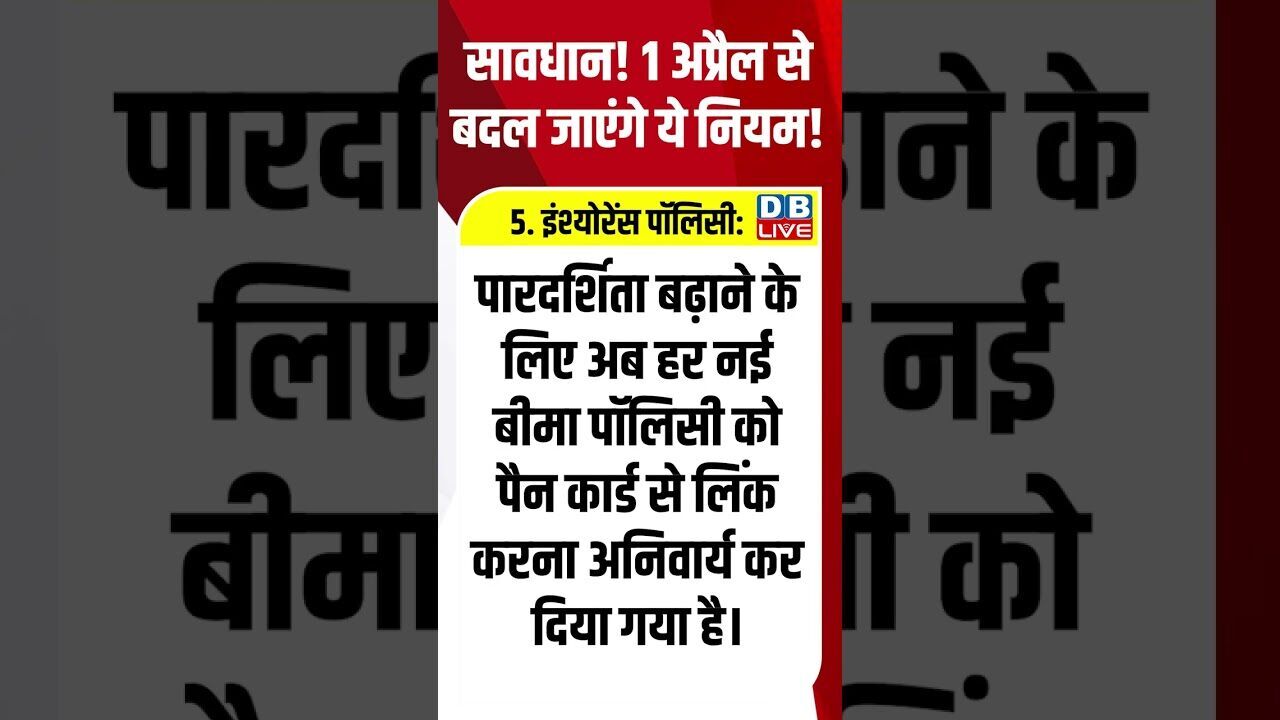 सावधान! 1 अप्रैल से बदल जाएंगे ये नियम! #breakingnews #latestnews #shortsvideo #news #dblive
