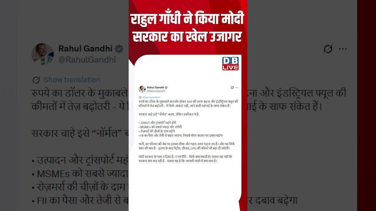 राहुल गाँधी ने किया मोदी सरकार का खेल उजागर #dblive #shortsvideo #breakingnews #dblivebreaking #bjp