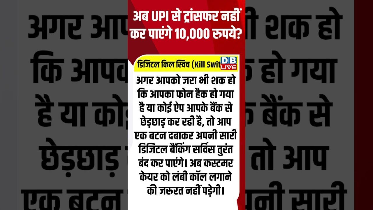 अब UPI से ट्रांसफर नहीं कर पाएंगे 10,000 रुपये #dblive #shortsvideo #breakingnews #latestnews #news