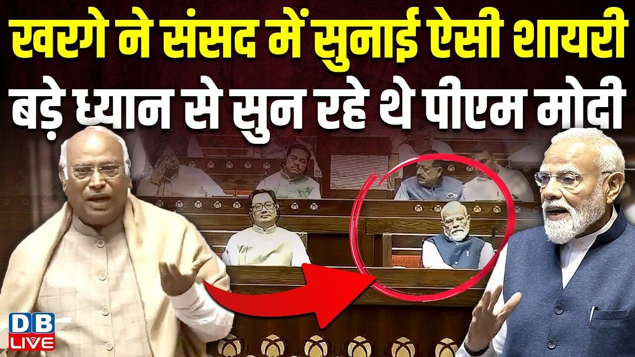Mallikarjun Kharge ने संसद में सुनाई ऐसी शायरी | बड़े ध्यान से सुन रहे थे PM Modi |Congress |#dblive