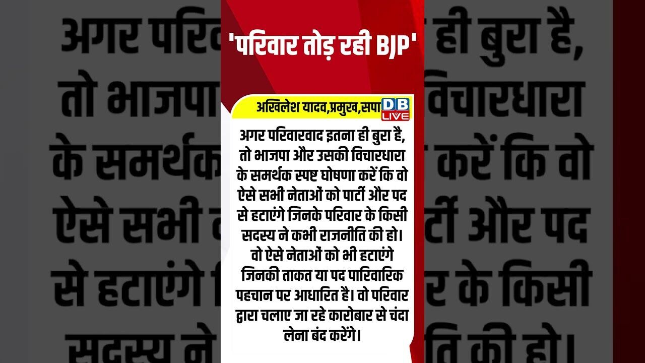 'परिवार तोड़ रही BJP' ! #shorts #youtubeshorts #shortsvideo #shortsfeed #akhileshyadav #dblive