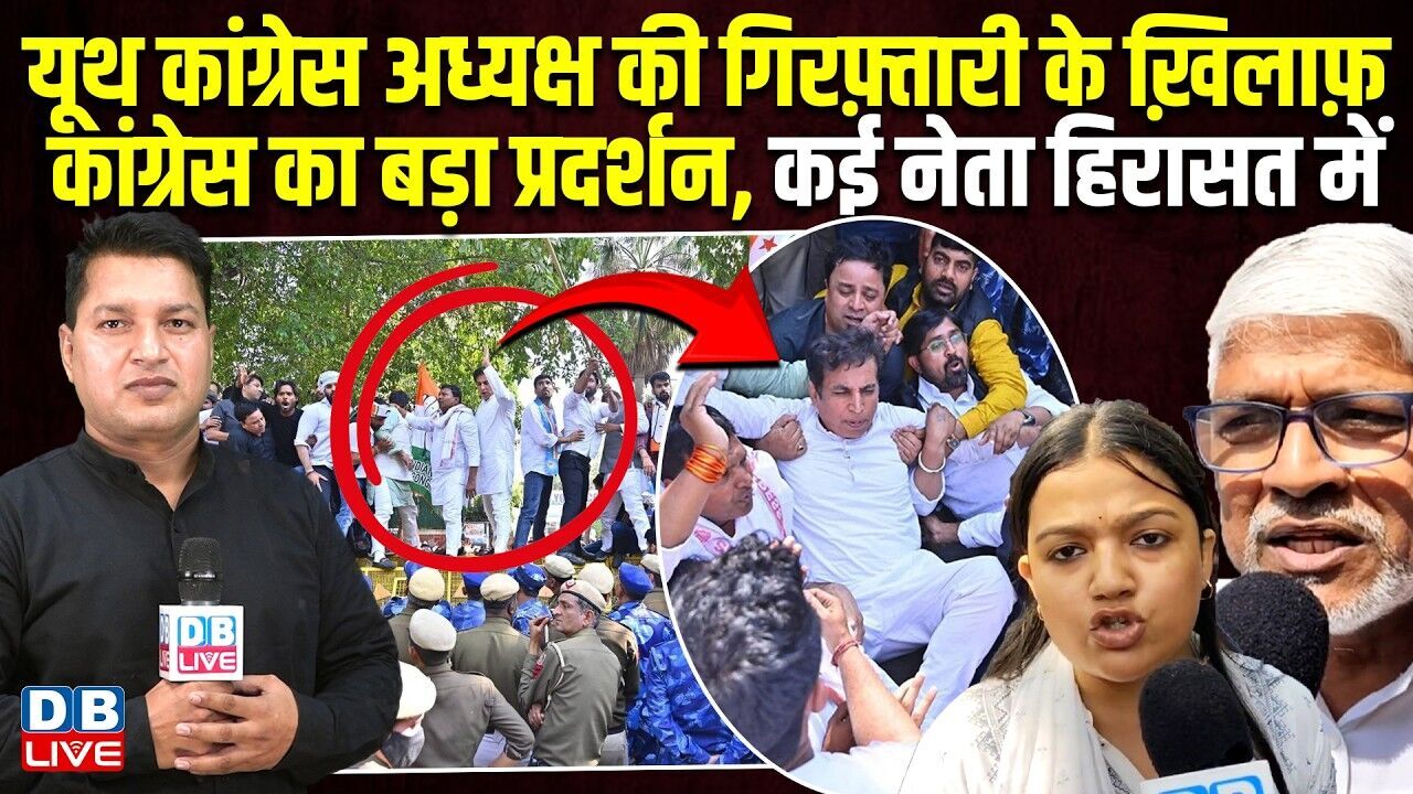 यूथ कांग्रेस अध्यक्ष की गिरफ़्तारी के खिलाफ़ Congress का बड़ा प्रदर्शन, कई नेता हिरासत में #dblive
