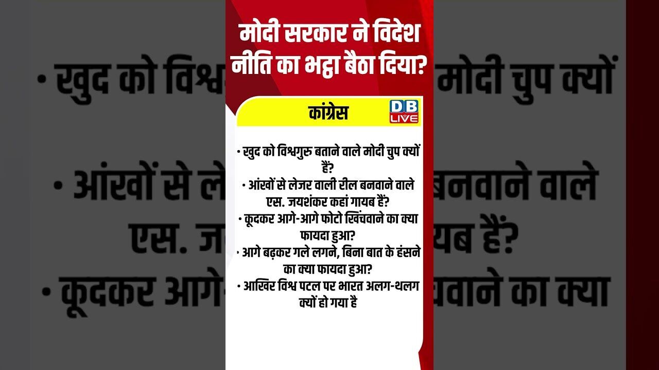मोदी सरकार ने विदेश नीति का भट्ठा बैठा दिया #dblive #shortsvideo #news #video #youtubeshorts #bjp