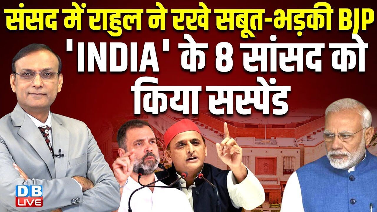 Sansad में Rahul Gandhi ने रखे सबूत-भड़की BJP- 'INDIA' के 8 सांसद को किया सस्पेंड | modi | #dblive